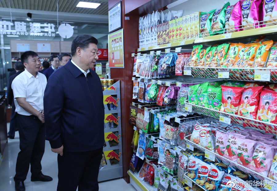 結(jié)束在遼寧撫順的考察活動后,28日中午,習(xí)近平總書記乘車返回沈陽。中途在服務(wù)區(qū)短暫休息時(shí),習(xí)近平特意走進(jìn)旁邊超市,仔細(xì)察看、詢問商品價(jià)格和品質(zhì),還掏錢買了一袋江米條、一罐醬香什錦菜、兩盒溝幫子熏雞,一共花了131元。(文字記者張曉松、攝影記者鞠鵬)?