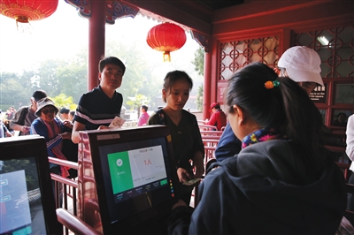 9月28日,香山公園,游客驗票入園。今年國慶假期,香山公園每日最大游客承載量為10.1萬人。新京報記者 侯少卿 攝