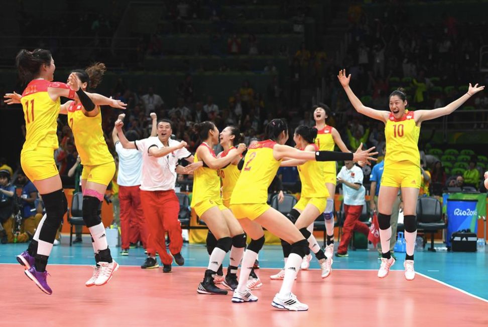 在2016年里約奧運會女子排球決賽中,中國隊以3比1戰(zhàn)勝塞爾維亞隊,奪得冠軍。新華社記者 李尕 攝
