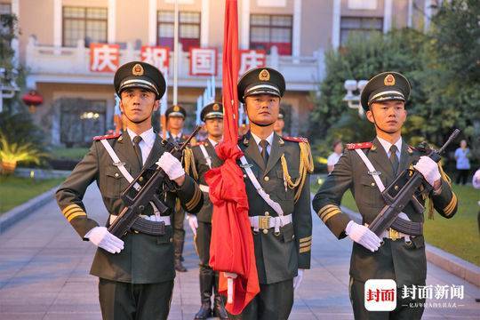 早上7點,伴隨著莊嚴的國歌聲,五星紅旗冉冉上升,飄揚在了成都天府廣場的上空。在眾多觀看升旗儀式的人群中,有一位女孩全程盯著國旗護衛(wèi)隊的第一排。