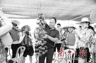 陽江陽西縣程村鎮(zhèn)紅光村村干部介紹生蠔養(yǎng)殖。張國勤 攝