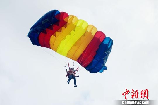 石春艷成功挑戰(zhàn)200米超低空定點(diǎn)跳傘。鄧道理 攝