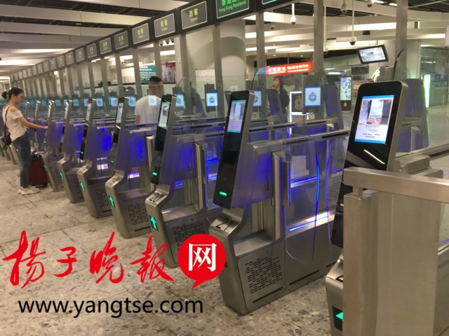 香港西九龍站實(shí)行“同層兩檢”??邕^這一條黃線就來到了香港口岸區(qū)。記者在進(jìn)入香港入境待檢區(qū)域后,首先看到有三處設(shè)置體溫檢查的柜臺(tái)。再往里走,即是香港居民入境通道。一排閘機(jī)依次排開,港澳通行證放上即可通過。不過首次來港的旅客需要從人工柜臺(tái)入關(guān)。記者到達(dá)時(shí),辦理香港入境程序的人較少,整個(gè)用時(shí)不到2分鐘,就完成辦理了入境程序。而在完成香港入境程序后,即可到檢票閘機(jī)處刷票出閘。從下車到入關(guān),記者一共花了約15分鐘?!艾F(xiàn)在正是小長(zhǎng)假,如果沒有坐高鐵而是選擇從福田口岸過關(guān),1個(gè)小時(shí)都搞不定?!币晃桓L镉慰透嬖V記者。