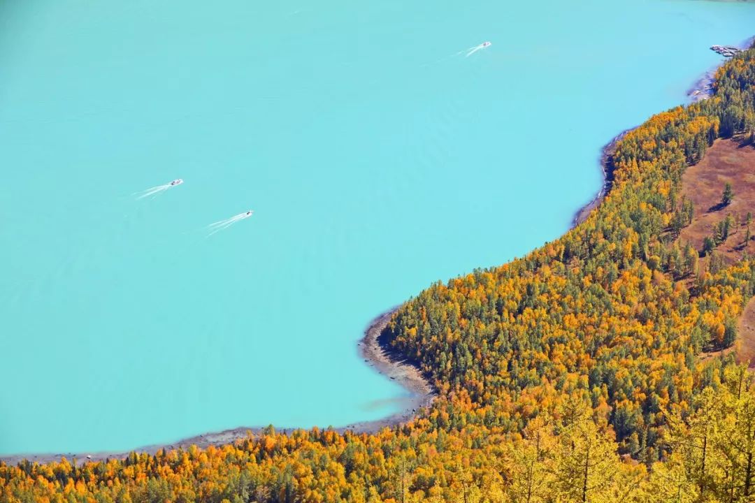 2018-09-19,新疆喀納斯。喀納斯的秋,宛如一塊鑲嵌在山林下碧綠的翡翠。作者:海巖