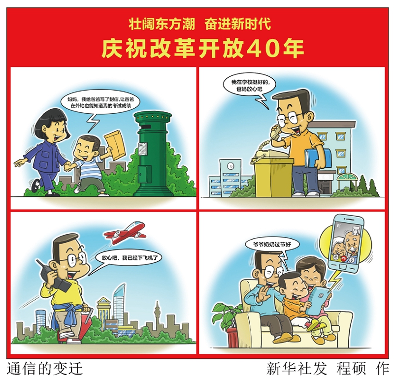 通信:以前,我們靠寫(xiě)信,讓爸媽在外地也能知道我們的考試成績(jī);后來(lái),我們用座機(jī),告訴爸媽“我在學(xué)校挺好的”;再后來(lái),我們無(wú)論出行到哪里,都可以隨時(shí)拿出手機(jī)跟家人說(shuō)聲“放心吧”;如今,我們更加可以方便地打開(kāi)手機(jī)視頻,問(wèn)候爺爺奶奶“過(guò)節(jié)好”。↓↓