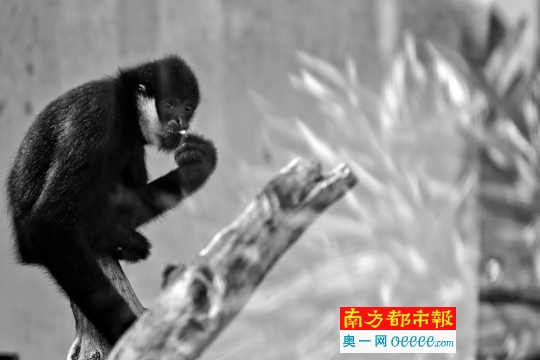 27日,在廣州動(dòng)物園,一只北白頰長(zhǎng)臂猿在進(jìn)食。南都記者 黎湛均 攝