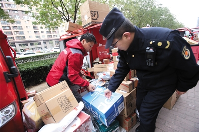 今年“雙十一”旺季壓力主要集中在收派環(huán)節(jié)。據(jù)市郵政管理局相關負責人介紹,在北京市“疏解整治促提升”和“減量發(fā)展”大背景下,北京已由快遞輸出城市轉(zhuǎn)變?yōu)檩斎氤鞘校衲昵熬艂€月,進京量比出京量多出1.3億件,特別是中心城區(qū)的投遞業(yè)務占比持續(xù)上升,占全市比重的71%。隨著“雙十一”業(yè)務高峰來臨,將進一步增大北京市快遞末端的收派壓力。