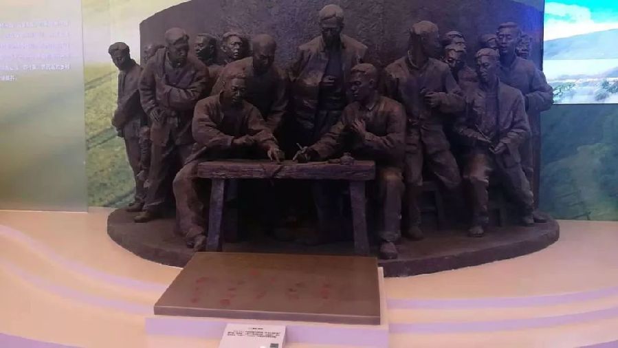 “我們的家鄉(xiāng),在希望的田野上?!?978年冬,安徽鳳陽(yáng)縣小崗村18位農(nóng)民堅(jiān)定地按下紅手印,實(shí)施包產(chǎn)到戶,拉開(kāi)了中國(guó)農(nóng)村改革的大幕,成為中國(guó)改革的標(biāo)志。這座雕塑讓我們重溫那個(gè)永載歷史的瞬間。