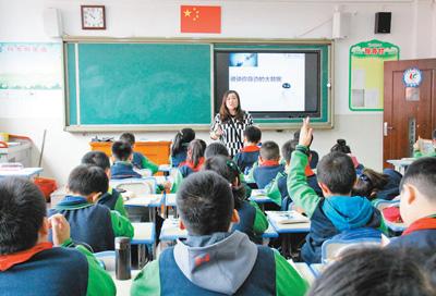 孩子們在課堂上熱烈討論,教室最后,8位班主任也在邊聽課邊做筆記。