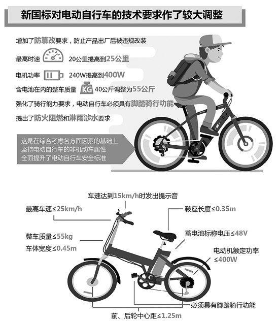 新國標(biāo)對電動(dòng)自行車的技術(shù)要求作了較大調(diào)整(見圖):