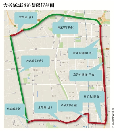 昨日,新京報(bào)記者從大興區(qū)政府獲悉,2019年1月1日起,大興區(qū)將對(duì)大興新城部分道路采取交通管理措施。具體來說,在禁限行區(qū)域內(nèi),每日6時(shí)至23時(shí),禁止載貨汽車、專項(xiàng)作業(yè)車通行;工作日7時(shí)至9時(shí)、17時(shí)至20時(shí),禁止外省、區(qū)、市核發(fā)號(hào)牌(含臨時(shí)號(hào)牌)的載客汽車通行。