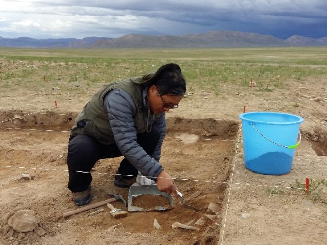 古人類學家高星在尼阿底遺址考古發(fā)掘現(xiàn)場。