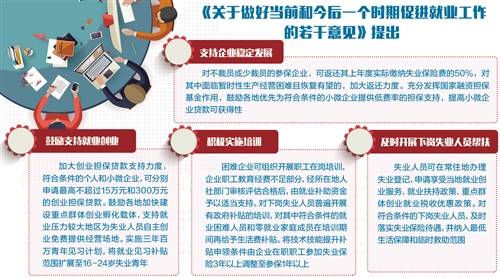 今年以來,我國就業(yè)形勢總體穩(wěn)定,穩(wěn)中有進。但是,個別地區(qū)、個別企業(yè)還面臨著一些新挑戰(zhàn)。為穩(wěn)定就業(yè),擴大幫扶范圍,增強支持力度,國務(wù)院日前印發(fā)《關(guān)于做好當(dāng)前和今后一個時期促進就業(yè)工作的若干意見》,為相關(guān)部門和地方政府做好就業(yè)工作提供了明確的目標(biāo)和方向——
