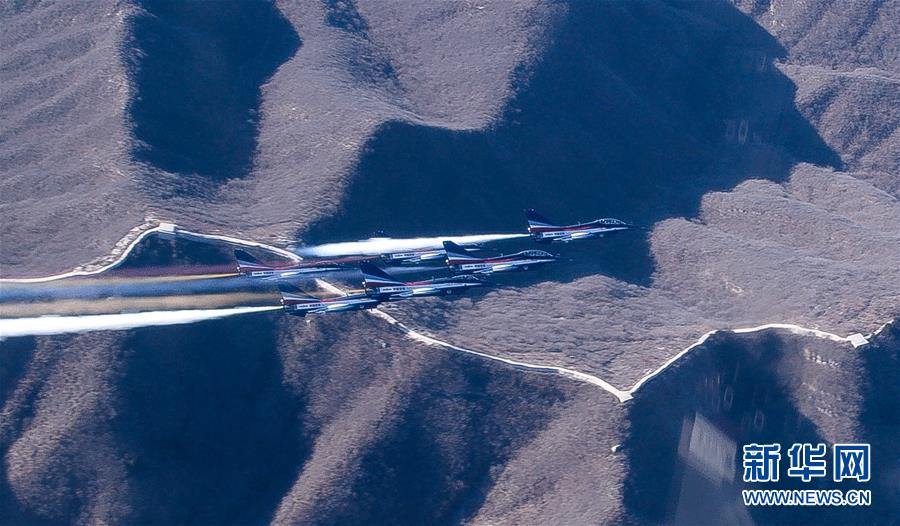 12月6日,中國空軍八一飛行表演隊(duì)6架殲-10飛越長城。? 新華社發(fā)(陶佳莉 攝)