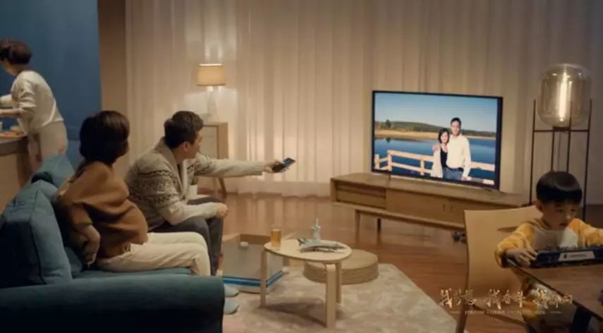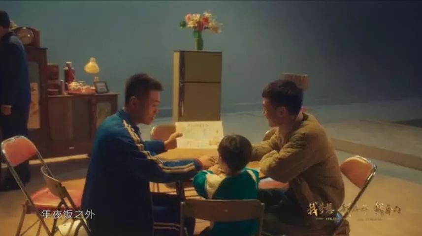 回到現(xiàn)代家庭的生活,人們的飲食、穿著、所用的生活電器都有明顯提升,這與之前八十年代的家庭形成了鮮明的對比。劉燁扶著懷孕的妻子一起坐在沙發(fā)上,妻子隆起的小腹代表著劉燁這個家庭對全面二孩政策的響應。