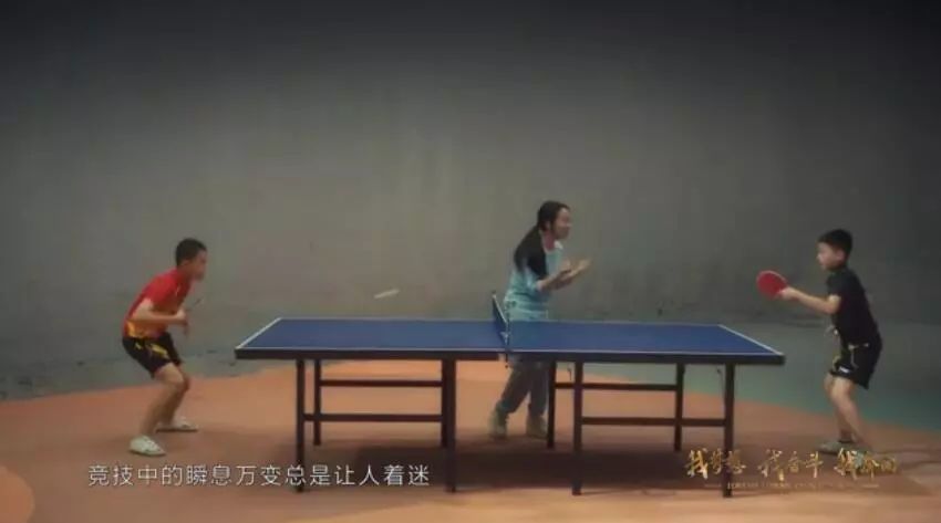 而兩位打乒乓球的小將分別穿的是劉國梁和孔令輝奧運奪冠時的比賽服裝。