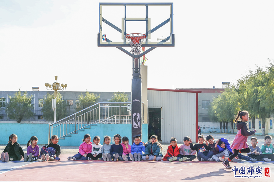 這是雄縣一所小學新建的籃球場,孩子們正在上體育課。據(jù)了解,籃球場上的設(shè)施是按照NBA的標準修建的。郭家豪 攝