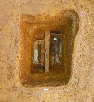 城河遺址王家塝墓地發(fā)現(xiàn)的“同穴二室”墓。資料圖片