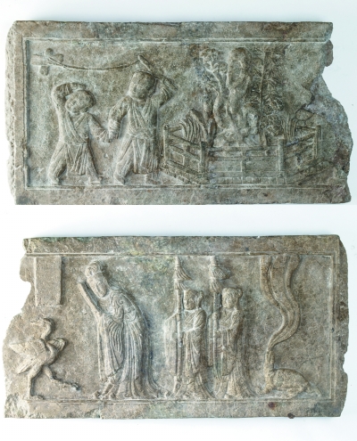 2014年起,考古隊對位于遼寧省北鎮(zhèn)市的新立遼代建筑遺址、琉璃寺遺址進行了考古發(fā)掘。在新立遺址,發(fā)現(xiàn)了一組較完整的遼代四合院式建筑基址。考古領(lǐng)隊萬雄飛介紹,出土遺物的瓦件絕大多數(shù)為綠色琉璃,“證明該四合院建筑為一座滿鋪綠琉璃瓦的高等級建筑。正殿周圍還出土了大量鋪地花斑石殘塊,這種高級石材一般僅用于皇家宮殿和陵寢建筑。”正殿之上還出土了一些玉冊殘塊,有契丹小字和漢字兩套。遺址東側(cè)的坡地上出土了一件具有皇家氣派的大型石螭首。通過與遼慶陵的比較,并結(jié)合史料綜合分析,專家認為這里就是遼代乾陵的陵前祭殿。