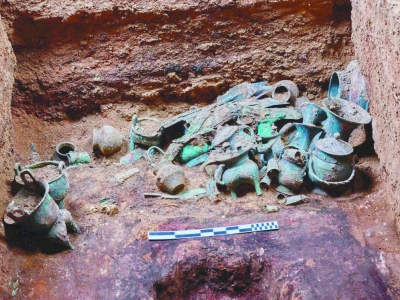 通過對115座墓葬的考古發(fā)掘,發(fā)現(xiàn)大多與兩周時期周系墓葬的特征保持了明顯的一致性。大墓和部分中型墓雖遭嚴重盜掘,但仍發(fā)掘清理出大量青銅器,以及金器、玉器、鐵器、陶器和漆木器等珍貴文物。最惹眼的是,大中型墓中,多隨葬有精美的漆木器,如鐘磬架子、幾案、豆等。