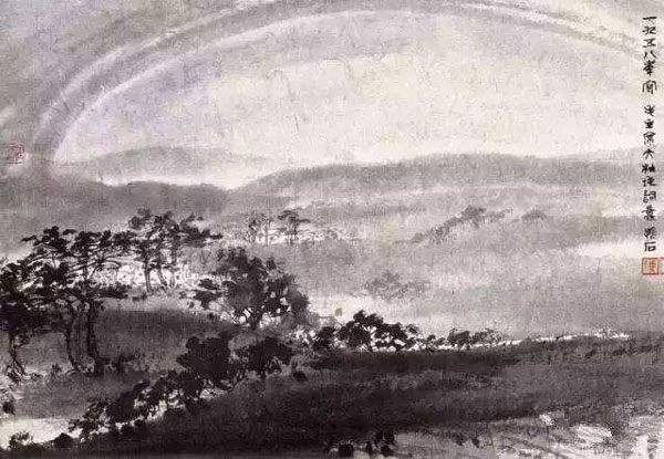 赤橙黃綠青藍(lán)紫,誰持彩練當(dāng)空舞?雨后復(fù)斜陽,關(guān)山陣陣蒼。
