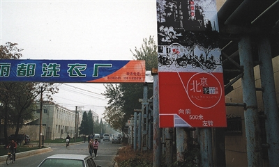 2004年8月15日,北京,798工廠。管道林立的廠房內(nèi)豎滿了招牌。圖/視覺中國