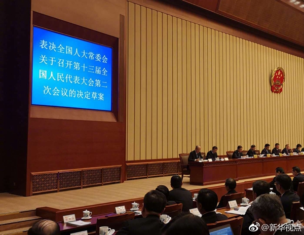 十三屆全國人大常委會第七次會議29日表決通過了關(guān)于召開十三屆全國人大二次會議的決定。根據(jù)決定,十三屆全國人大二次會議將于2019年3月5日在京召開。