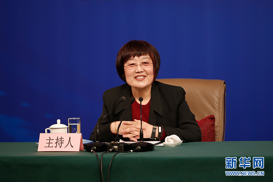 十三屆全國人大一次會議新聞中心于3月7日在梅地亞中心多功能廳舉行記者會,邀請國務院扶貧辦主任劉永富就“打好精準脫貧攻堅戰(zhàn)”的相關問題回答中外記者的提問。圖為記者會主持人王冬梅。新華網(wǎng)/中國政府網(wǎng) 陳杰 攝
