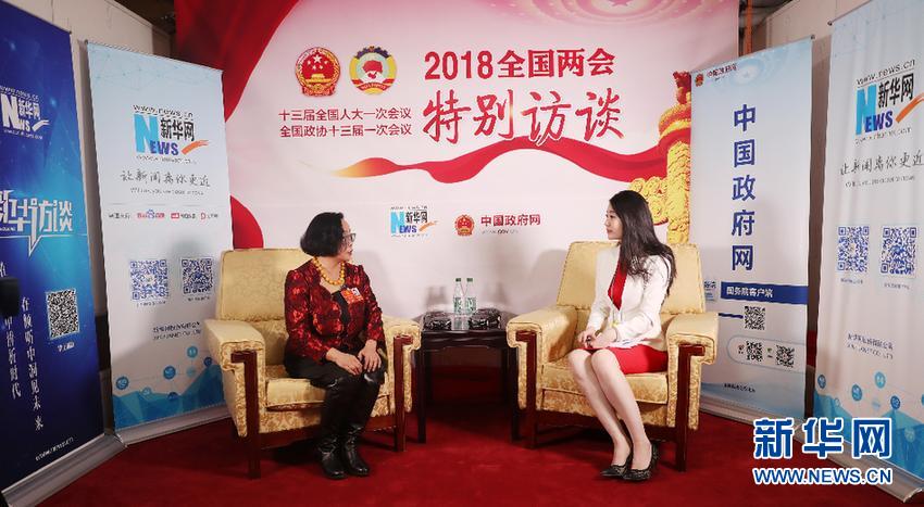 3月5日,全國(guó)人大代表、河北蔚縣周淑英剪紙藝術(shù)館館長(zhǎng)周淑英到設(shè)在人民大會(huì)堂的新華網(wǎng)兩會(huì)特別訪談演播廳接受專訪。新華網(wǎng) 王翰林 攝