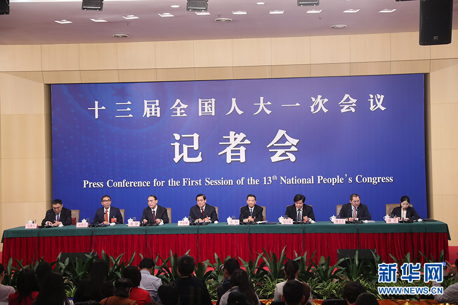 十三屆全國人大一次會(huì)議新聞中心于3月12日15時(shí)在梅地亞中心多功能廳舉行記者會(huì),邀請(qǐng)十二屆全國人大財(cái)經(jīng)委副主任委員尹中卿、教科文衛(wèi)委副主任委員吳恒、環(huán)資委副主任委員袁駟、內(nèi)司委委員鄭功成,全國人大常委會(huì)預(yù)算工委副主任劉修文、常委會(huì)辦公廳秘書局巡視員傅文杰就“人大監(jiān)督工作”相關(guān)問題回答中外記者提問。圖為記者會(huì)現(xiàn)場。新華網(wǎng)/中國政府網(wǎng) 陳杰?攝