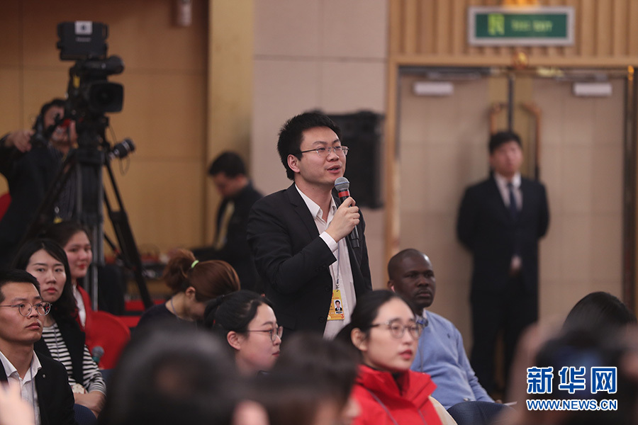 3月12日,十三屆全國人大一次會議新聞中心在梅地亞中心多功能廳舉行記者會,邀請十二屆全國人大財經(jīng)委副主任委員尹中卿、教科文衛(wèi)委副主任委員吳恒、環(huán)資委副主任委員袁駟、內(nèi)司委委員鄭功成,全國人大常委會預算工委副主任劉修文、常委會辦公廳秘書局巡視員傅文杰就“人大監(jiān)督工作”相關問題回答中外記者提問。圖為中國新聞社記者提問。新華網(wǎng)/中國政府網(wǎng) 王健 攝
