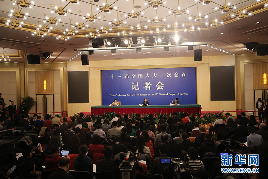 十三屆全國人大一次會議新聞中心于3月17日15時在梅地亞中心多功能廳舉行記者會,邀請環(huán)保部部長李干杰就“打好污染防治攻堅戰(zhàn)”相關問題回答中外記者提問。圖為記者會現(xiàn)場。新華網(wǎng)/中國政府網(wǎng) 陳杰 攝