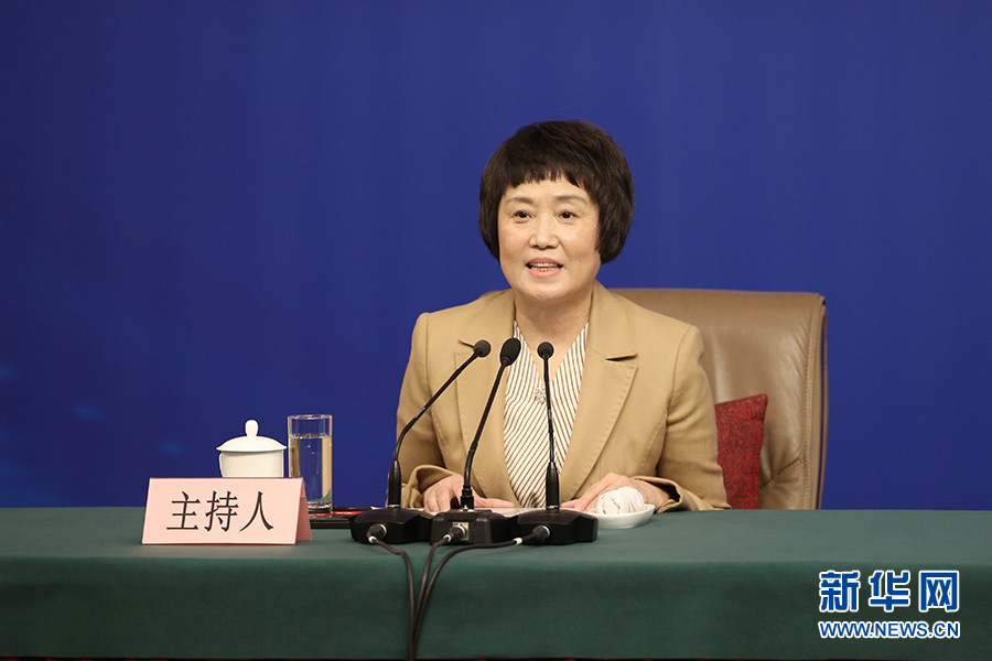 十三屆全國人大一次會議新聞中心3月17日(星期六)15時(shí)在梅地亞中心多功能廳舉行記者會,邀請環(huán)保部部長李干杰就“打好污染防治攻堅(jiān)戰(zhàn)”相關(guān)問題回答中外記者提問。圖為記者會主持人。新華網(wǎng)/中國政府網(wǎng) 陳杰 攝