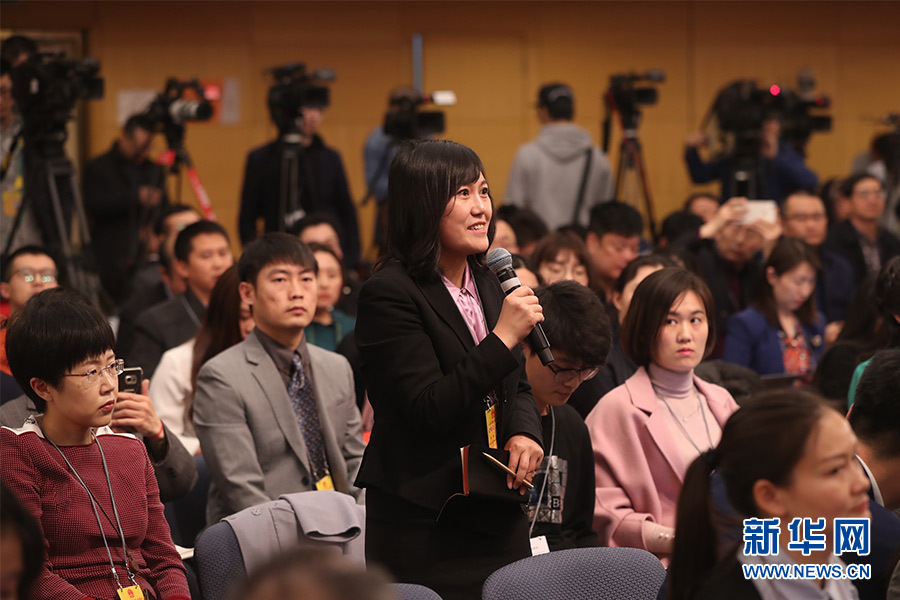 十三屆全國人大一次會議新聞中心3月17日(星期六)15時在梅地亞中心多功能廳舉行記者會,邀請環(huán)保部部長李干杰就“打好污染防治攻堅戰(zhàn)”相關問題回答中外記者提問。圖為中央人民廣播電臺、央廣網(wǎng)記者提問。新華網(wǎng)/中國政府網(wǎng) 曲植 攝