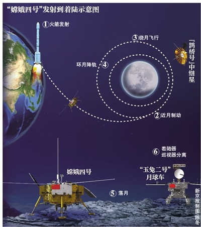 嫦娥四號(hào)去年12月8日搭乘火箭發(fā)射,12月12日進(jìn)入環(huán)月軌道,12月30日進(jìn)入月球背面著陸準(zhǔn)備軌道。12月12日后,嫦娥四號(hào)進(jìn)行了2次環(huán)月軌道修正,與“鵲橋號(hào)”中繼星進(jìn)行了4次中繼鏈路測(cè)試,開展激光測(cè)距、三維成像等導(dǎo)航敏感器在軌測(cè)試。