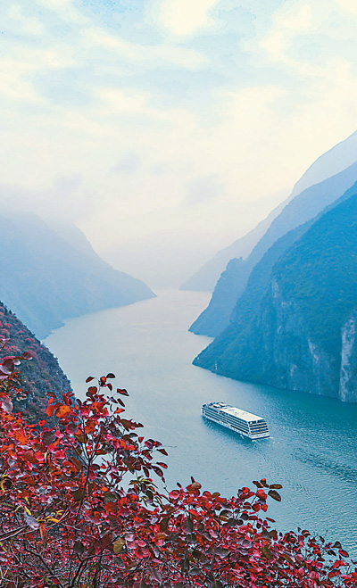 游輪在長(zhǎng)江瞿塘峽行駛。文振效攝(人民視覺(jué))