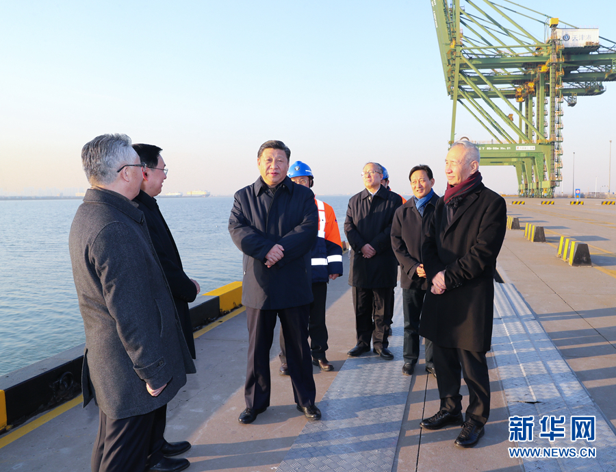 1月16日至18日,中共中央總書記、國(guó)家主席、中央軍委主席習(xí)近平在京津冀考察,主持召開(kāi)京津冀協(xié)同發(fā)展座談會(huì)并發(fā)表重要講話。這是1月17日下午,習(xí)近平在天津港碼頭考察。 新華社記者 鞠鵬 攝