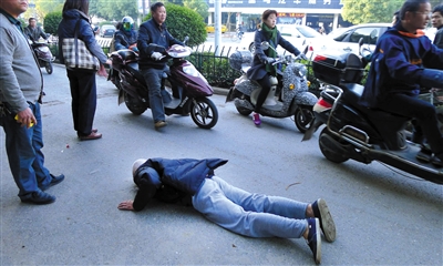 2013年11月25日,浙江金華,老人摔倒在地,無(wú)人敢扶。 資料圖/視覺(jué)中國(guó)