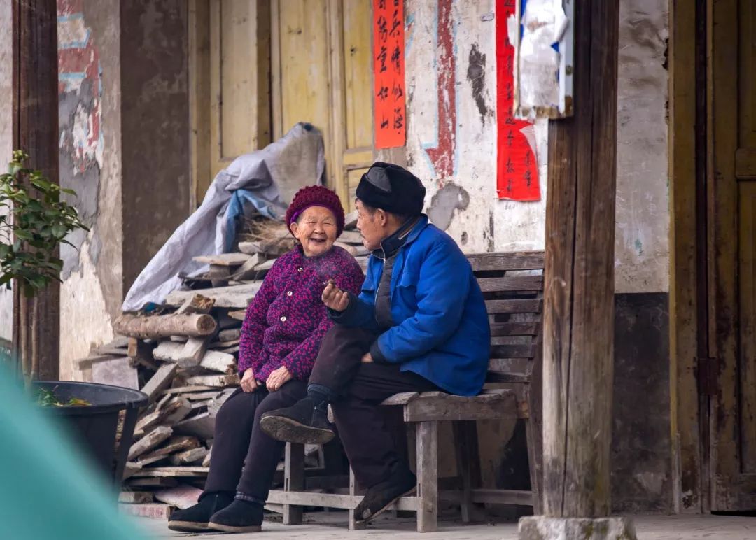 2019-01-27,湖北利川。相伴終生,白頭到老,就是最浪漫的事。利川市黃泥塘一對(duì)夫妻在一起開(kāi)心地聊天。作者:利川六哥
