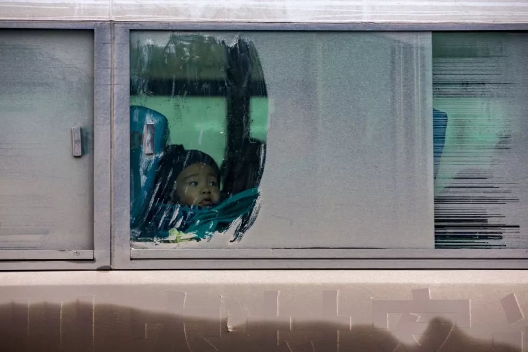2019-01-29,湖北省利川市。利川中心客運(yùn)站,一個(gè)孩子在汽車?yán)?,向回家的方向張望。作者:利川六?/p>