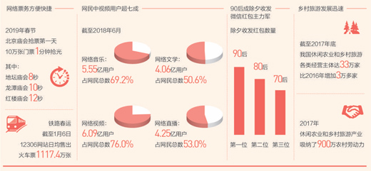 隨著交通、通信等基礎(chǔ)設(shè)施的不斷改善和創(chuàng)新成果的不斷涌現(xiàn),人們歡度春節(jié)的方式也有了很大變化。鄉(xiāng)村游、民俗游成為過年新選擇;人們在旅途上也能享受多種娛樂;移動互聯(lián)網(wǎng)“e”路隨行,視頻拜年有了許多新花樣。服務(wù)的提升、技術(shù)的創(chuàng)新、選擇的多樣為人們節(jié)日生活提供了更多的便捷和新鮮的體驗,為春節(jié)增添了濃濃的樂趣。
