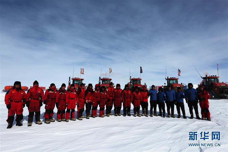 2月4日農(nóng)歷大年三十,部分內(nèi)陸隊(duì)員在南極冰蓋上合影。2月5日大年初一,中國(guó)第35次南極科學(xué)考察隊(duì)兩支內(nèi)陸隊(duì)——昆侖隊(duì)和泰山隊(duì)的37名隊(duì)員,繼續(xù)以中國(guó)南極中山站為目標(biāo),奔馳在茫茫的南極內(nèi)陸冰蓋上,在冰天雪地中度過(guò)了農(nóng)歷豬年第一天。新華社記者 劉詩(shī)平 攝