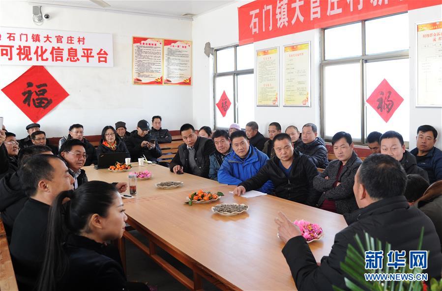 在臨沭縣大官莊村村民茶話會(huì)現(xiàn)場(chǎng),歸鄉(xiāng)人員和村干部共同探討未來(lái)致富發(fā)展思路(2月7日攝)。新華社記者 袁軍寶 攝