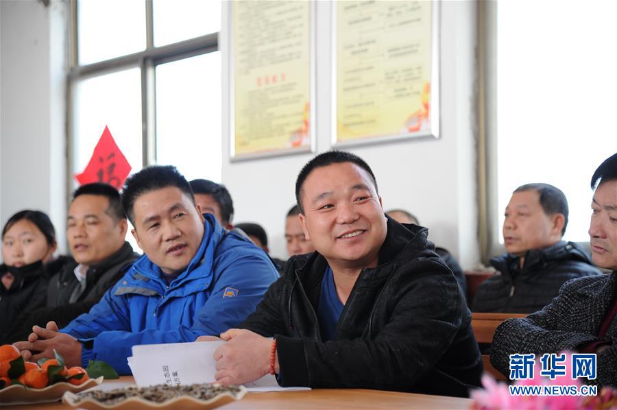 在臨沭縣大官莊村村民茶話會(huì)現(xiàn)場(chǎng),歸鄉(xiāng)人員介紹自己未來(lái)的返鄉(xiāng)創(chuàng)業(yè)思路(2月7日攝)。新華社記者 袁軍寶 攝