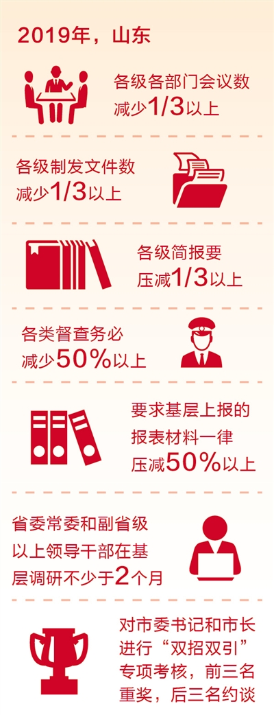 山東下決心砍掉不必要的會(huì)議,精簡(jiǎn)文件,讓干部從“文山會(huì)?!敝薪饷摮鰜?lái)。今年,山東各級(jí)各部門(mén)會(huì)議數(shù)量將減少1/3以上,各級(jí)制發(fā)文件數(shù)量將減少1/3以上,各級(jí)簡(jiǎn)報(bào)將壓減1/3以上,基層上報(bào)的報(bào)表材料一律壓減一半以上。