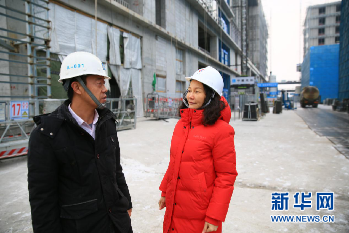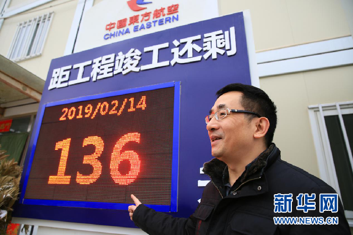 圖片說(shuō)明:龍雪波向記者介紹,離竣工還剩136天,工人們以飽滿的精神努力工作。攝影:新華網(wǎng)錢春弦