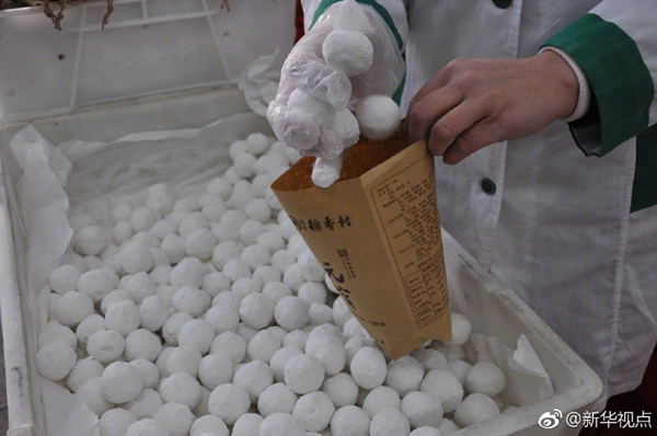 說完了湯圓,再來說說元宵。羅澍偉介紹說,元宵用糯米細粉制成,圓形,餡有豆沙、白糖、山楂及各類蜜餞果料等,食用時煮、蒸、炸、拔絲皆可。傳為上元節(jié)期間,元代大都(即今北京)的糕點鋪,為使人方便快捷地吃上節(jié)令食品,首創(chuàng)了搖制法。明代劉若愚對此有詳細記載:“其制法用糯米細面,內(nèi)用核桃仁、白糖、玫瑰為餡,灑水滾成,如核桃大,即江南所稱湯圓也?!币蛳嫡率逋砩鲜秤?,直接取名“元宵”。方法雖然粗獷,但構(gòu)思巧妙,且適于批量生產(chǎn)。