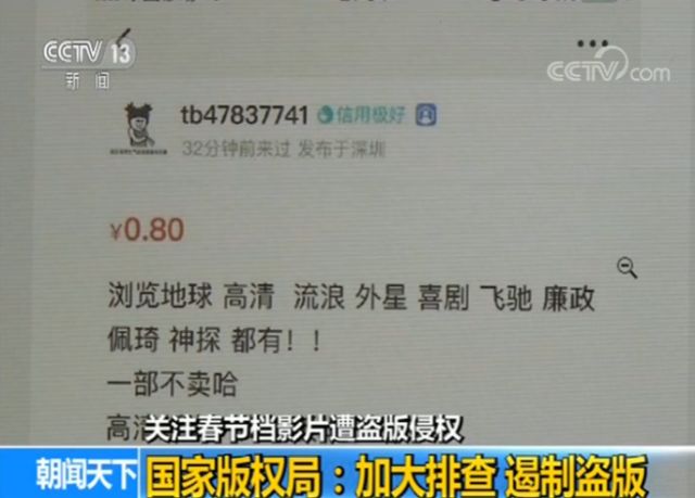 春節(jié)期間,《流浪地球》等電影票房一路飄紅,但盜版也來(lái)勢(shì)兇猛,有人甚至在微信群里“攜種拜年”。2019-02-12 18:03:58