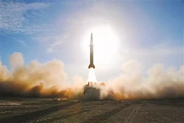 戈壁高原,導(dǎo)彈點火升空。王杰 攝