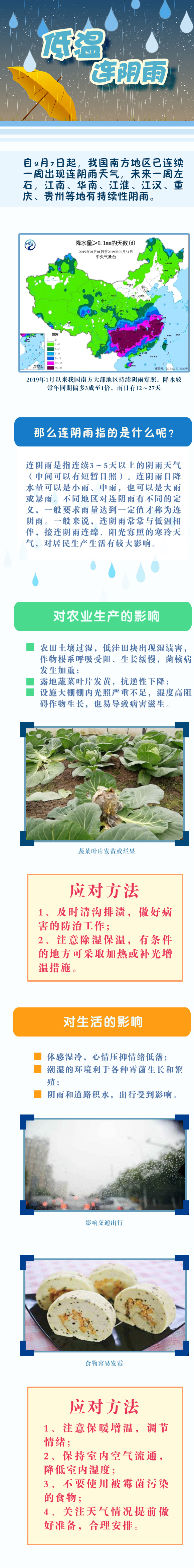 氣象專家表示,持續(xù)陰雨寡照和階段性低溫天氣對(duì)南方地區(qū)生產(chǎn)生活、交通運(yùn)輸、人體健康等造成一定影響,特別是對(duì)農(nóng)業(yè)生產(chǎn)的影響較大。油菜、蔬菜遭受濕漬害,長勢(shì)偏弱,露地蔬菜產(chǎn)量下降。設(shè)施大棚光照不足,果蔬產(chǎn)量和品質(zhì)都下降。